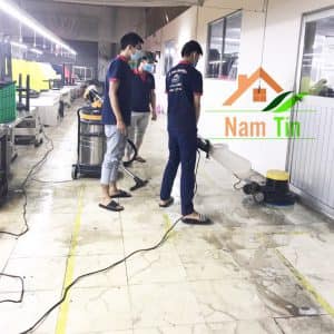 Bước 4: Vệ sinh đánh sạch sàn nhà xưởng