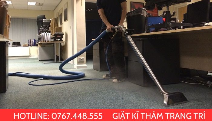 - Dùng máy vệ sinh thảm bằng hơi nước để vệ sinh từng phần của thảm. Bạn có thể mua máy hoặc thuê máy nếu sử dụng ít, hoặc đơn giản hơn là thuê dịch vụ để tiết kiệm chi phí.