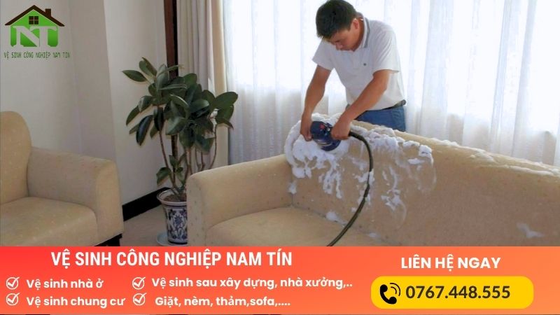 Trên đây là toàn bộ thông tin về dịch vụ giặt ghế sofa tại nhà của vệ sinh Nam Tín, nếu như bạn đang có nhu cầu sử dụng dịch vụ của chúng tôi. Khách hàng có thể liên hệ theo số Hotline: 0767448555 để được nhân viên tư vấn và báo giá một cách cụ thể nhất. Hy vọng những chia sẻ trên sẽ giúp ích cho bạn nhé.