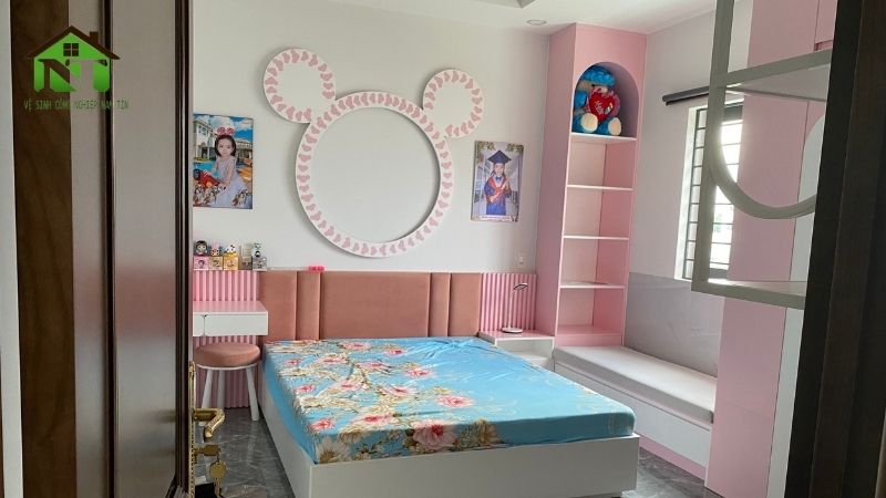 Tiếp theo sẽ tiến hành vệ sinh phòng ngủ theo các bước như quét dọn, vệ sinh, lau chùi, sắp xếp gọn gàng tương tự với phòng khách.