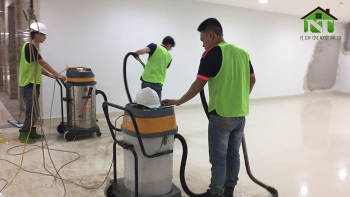 - Vệ sinh sàn nhà đánh bóng sàn (bằng máy công nghiệp).