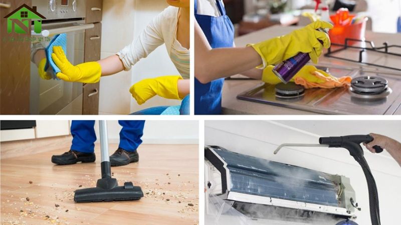 - Vệ sinh tất tần tật nội thất bên trong ngôi nhà như bàn, ghế, tủ, bếp, máy lạnh, máy quạt, đèn, công tắc, ổ cắm,…..